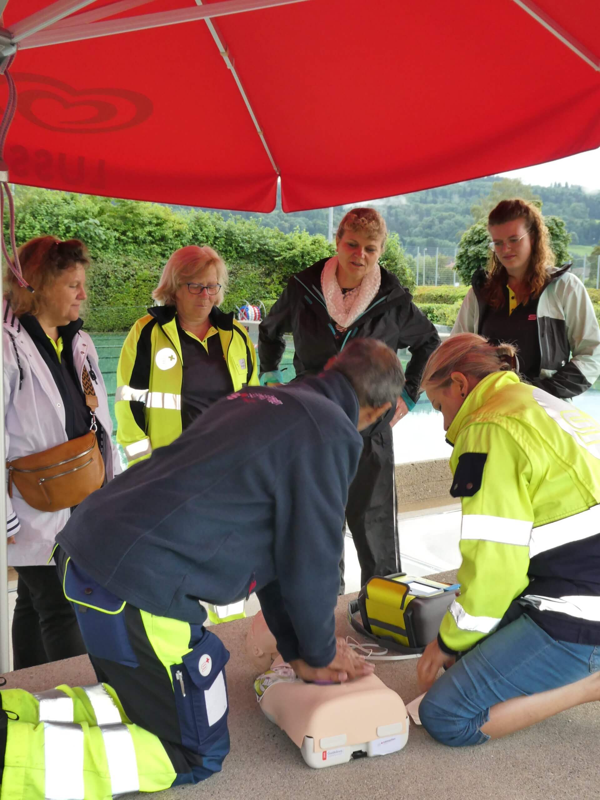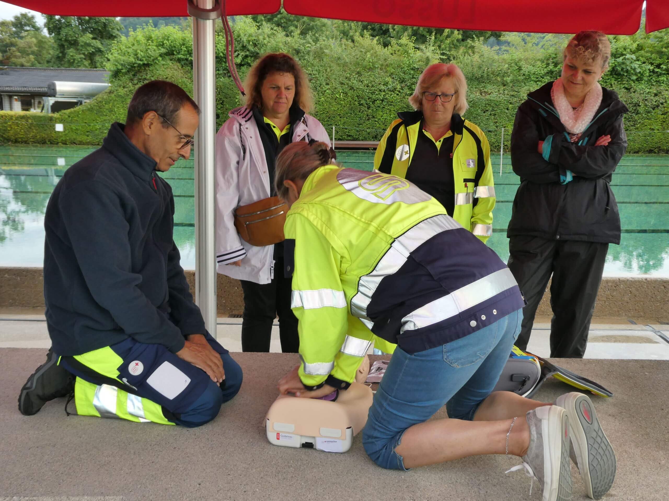 In der Badi Villmergen wird die Reanimation eines Kindes geübt.