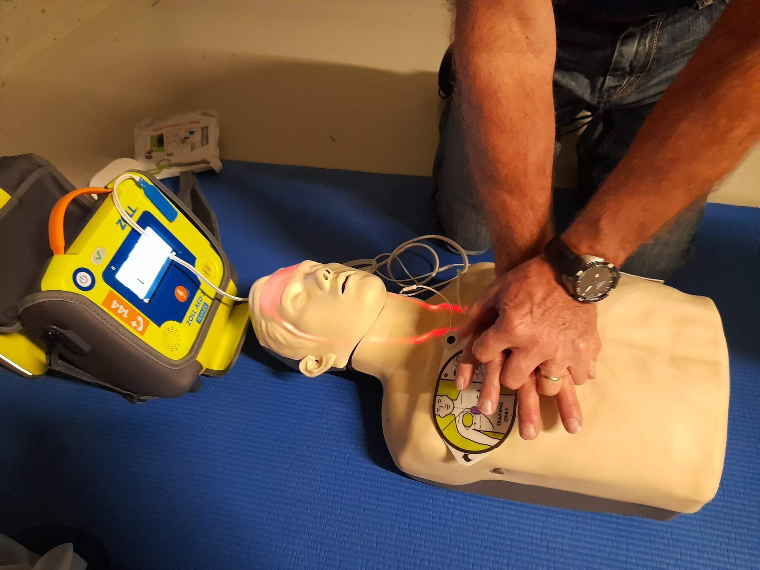Die Herzdruckmassage wird intensiv geübt.