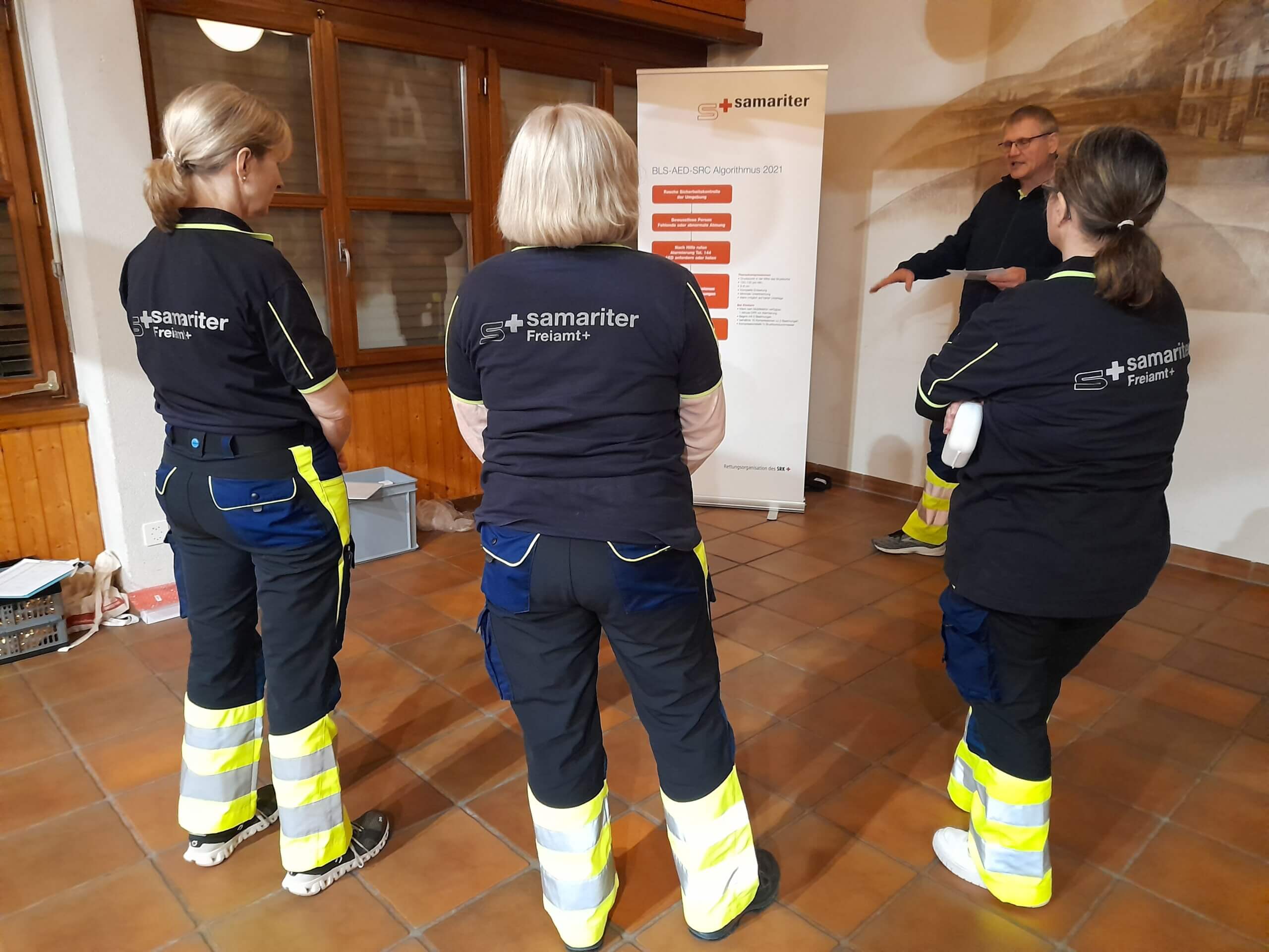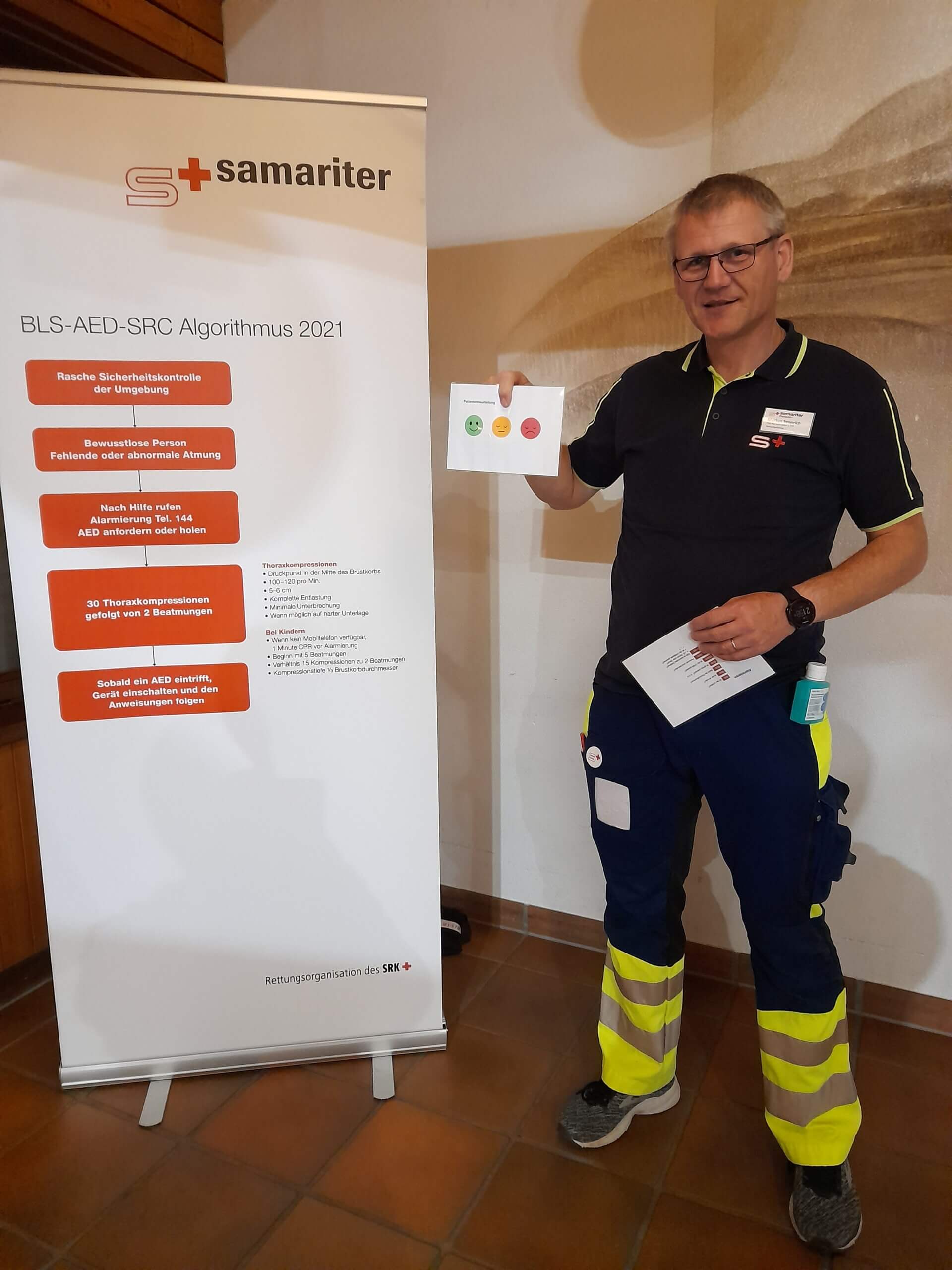 Der Kursleiter Markus Sennrich erklärt den BLS-AED-Algorithmus.