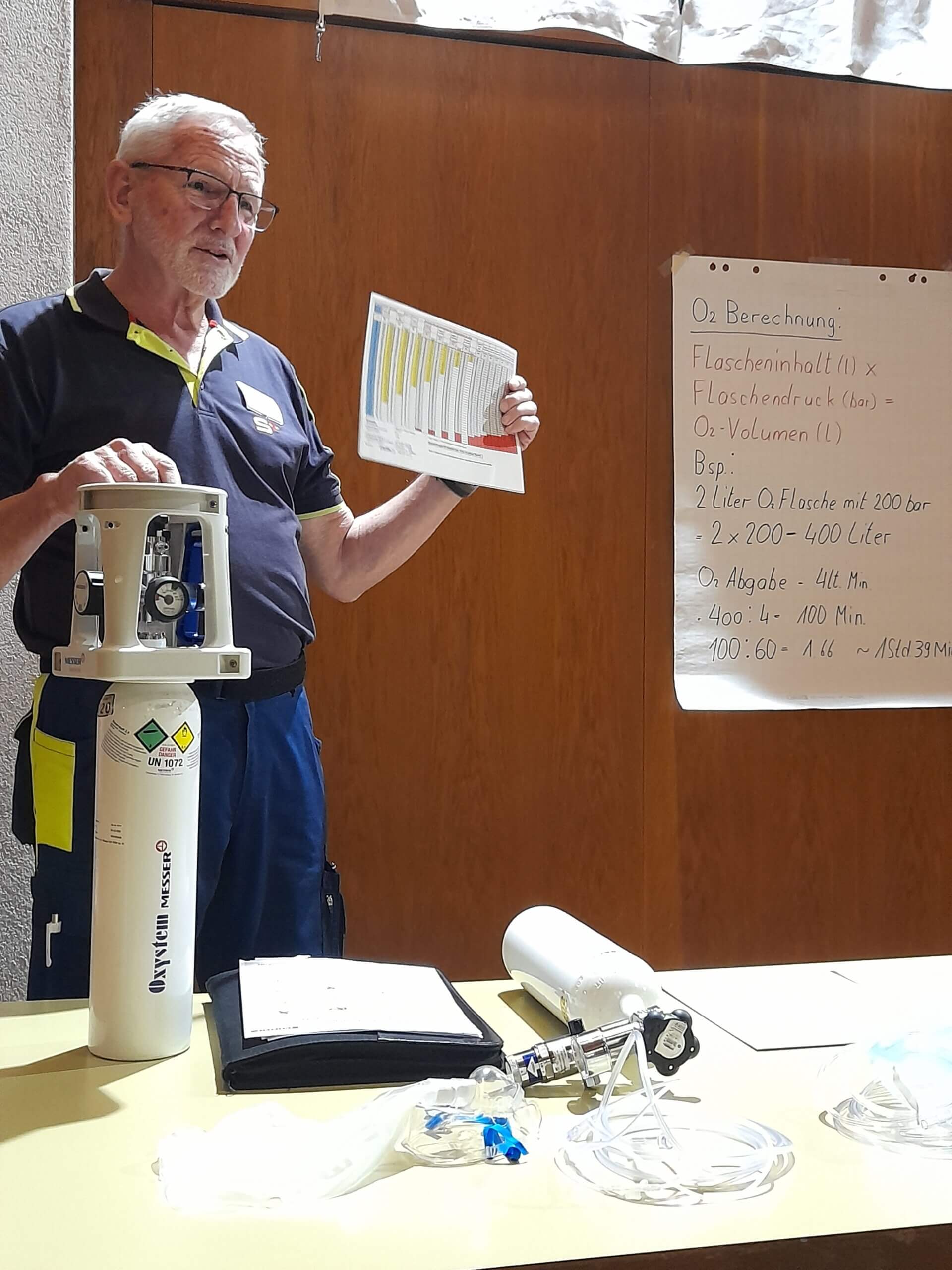 Bei Toni Gassmann wird die Sauerstoffabgabe repetiert und geübt.