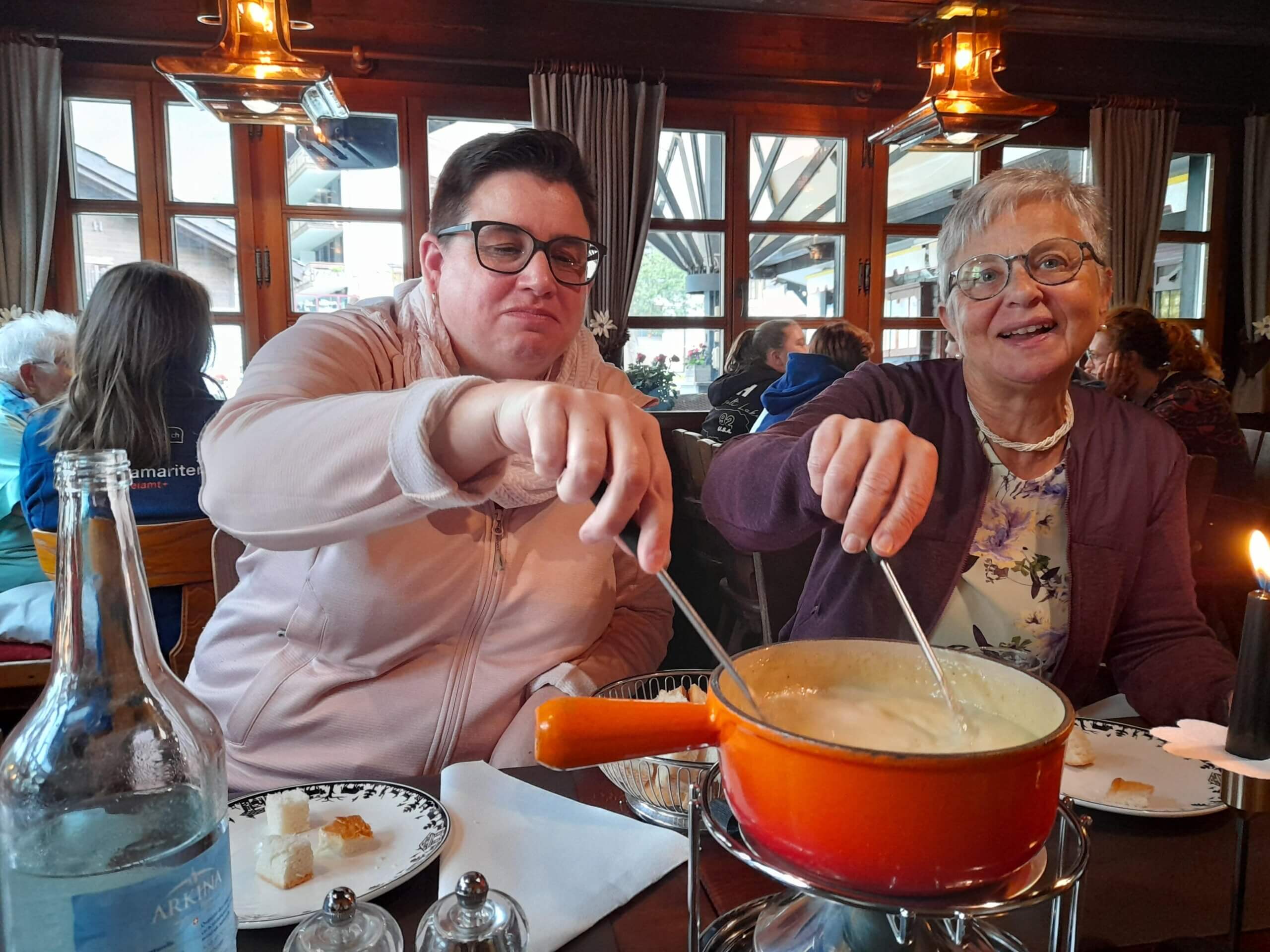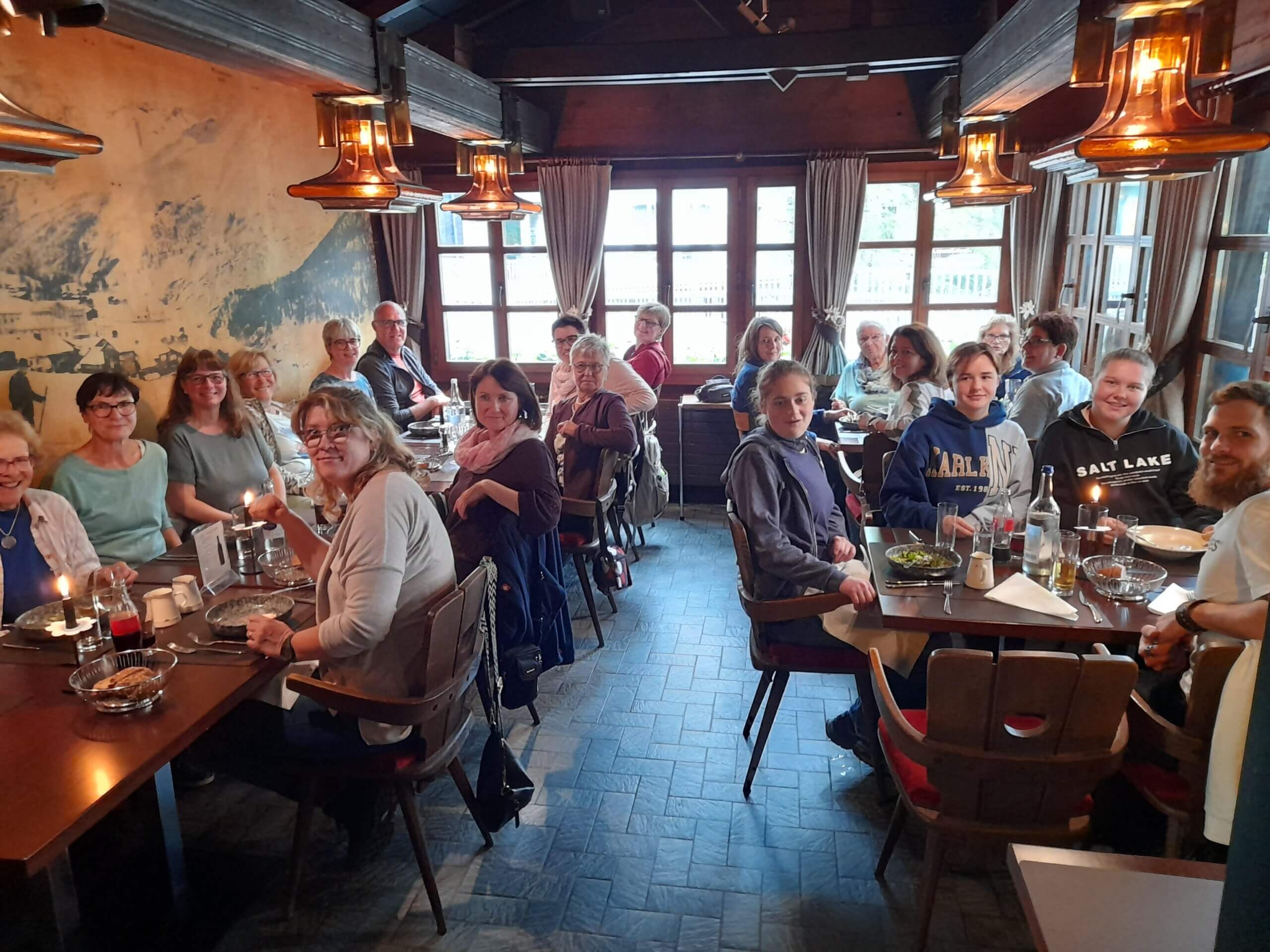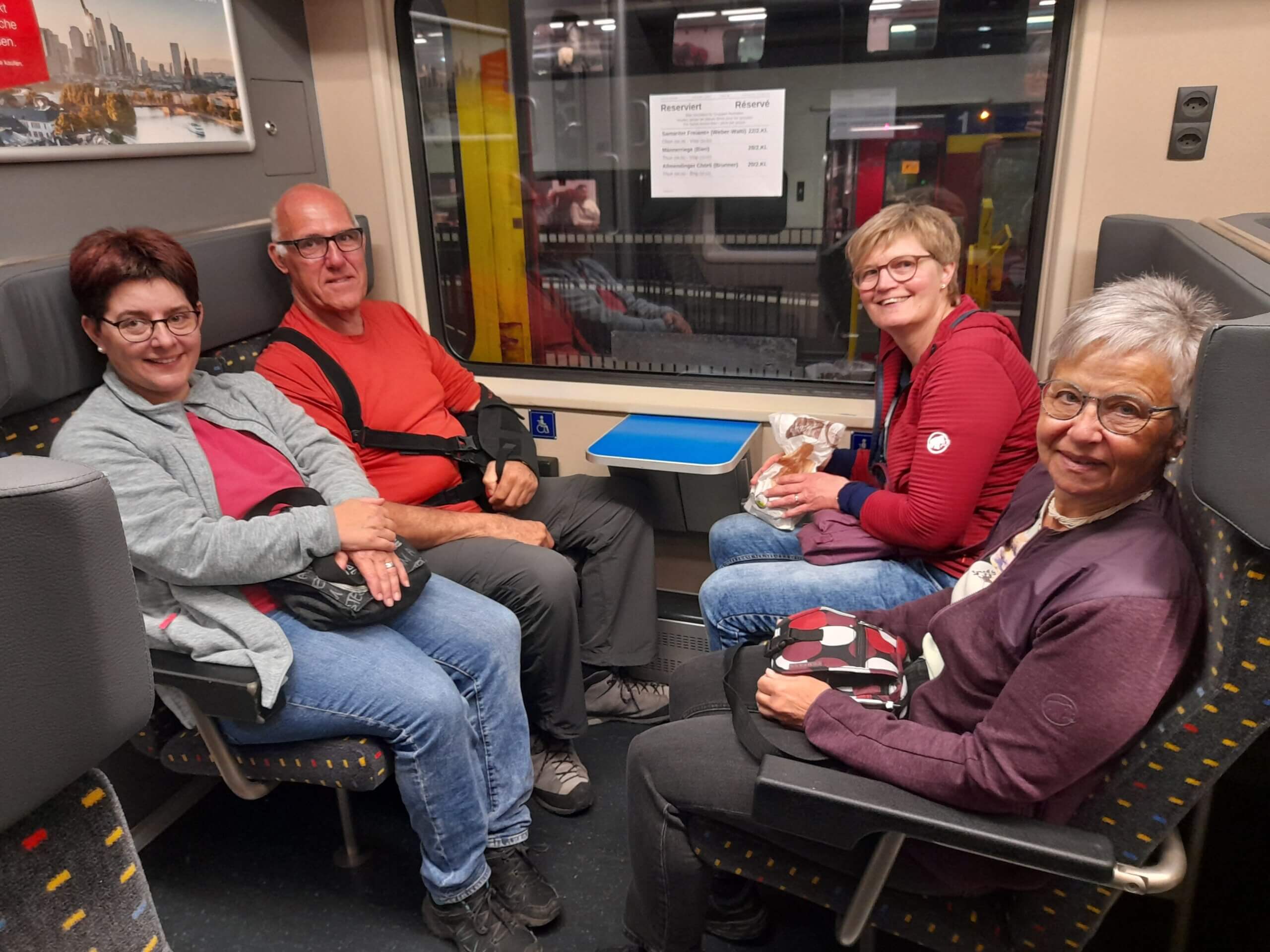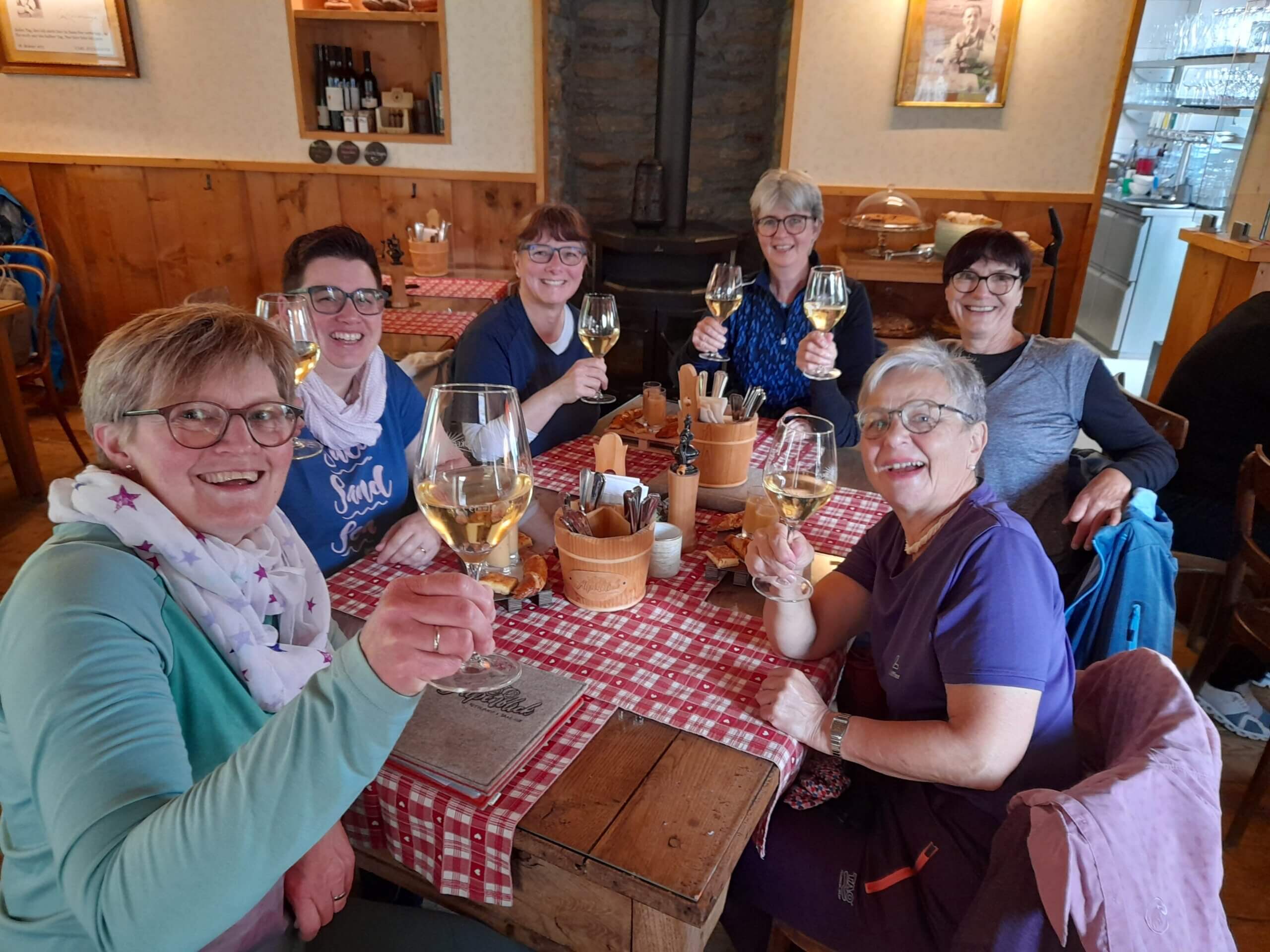 Die Samariterreise 2024 wurde von Monika Weber (2. von rechts) perfekt organisiert. Vielen Dank!Lauter frohe Gesichter während der Zugfahrt vom Freiamt nach Saas Fee.Sehr schön, dass unsere Jungen auch dabei waren.Samariter-FreundinnenAuf dem Weg zur Jugendherberge.Samariter Freiamt+ ReisegruppeEin Bänkli für zwei auf dem Dorfrundgang.Interessantes Quiz im Dorfmuseum.Manuela und Irene genossen das Walliser Fondue.Ein feines Nachtessen in froher Runde gabs am Abend.Die Sonntagswanderung fiel ins Wasser …… wurde aber mit einem grandiosen Apéro belohnt.Bei trübem Wetter kamen die saftigen Wiesen und bunten Blumen wunderbar zur Geltung.