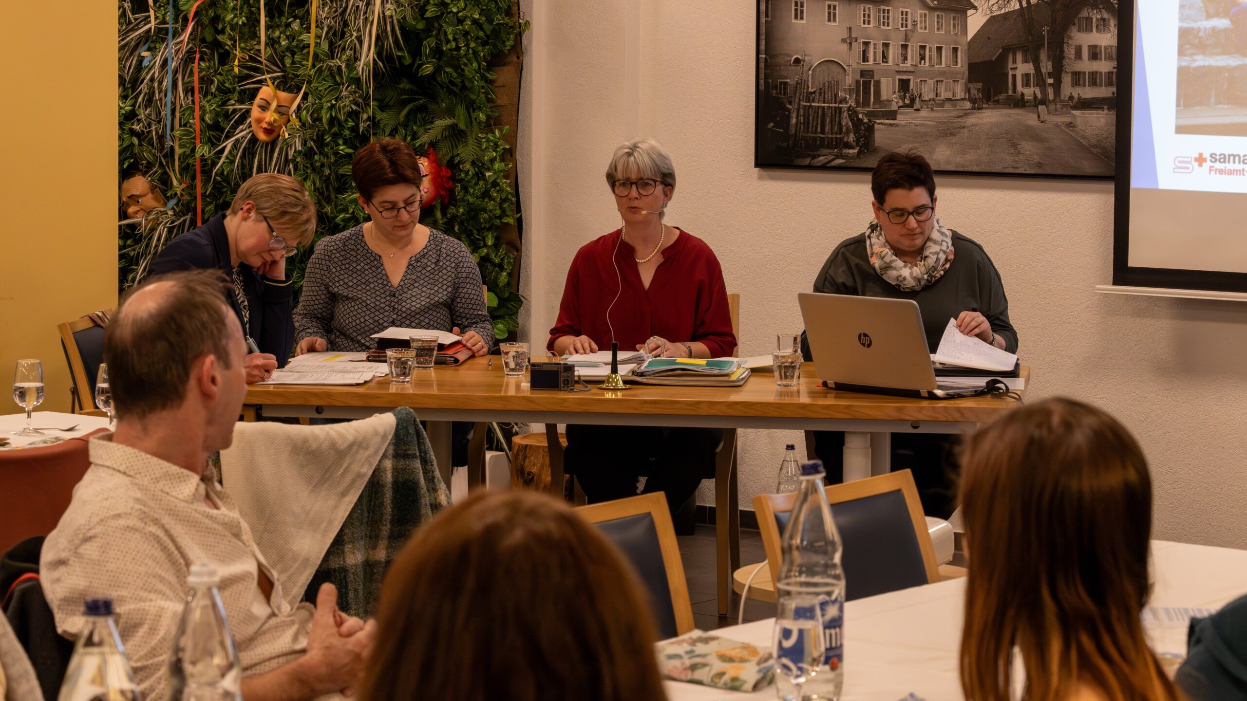 Luzia Zimmermann führte durch die vierte Vereinsversammlung von Samariter Freiamt+.In der Oberen Mühle in Villmergen wurden wir bestens bewirtet und genossen eine sehr gute Infrastruktur.Neumitglieder 2025 von links: Eveline Meier, Noldi Leuthold, Heidy Knecht und Jerzy Nowak (abwesend).Geehrt für vorbildliche Vorstandsarbeit von links: Manuela Stirnimann, Markus Sennrich, Toni Gassmann, Samea Stirnimann und Hörbi Konrad.Mit einer Rose begrüsste Manuela Stirnimann den neuen Kursleiter/Samariterlehrer Stephan Seeholzer sowie Ernst Frischknecht, Verena Schlatter und Jenny Hugi als neue Vorstandsmitglieder (von links).Der Vorstand von links: Herbert Konrad, Jenny Hugi, Luzia Zimmermann, Ernst Frischknecht, Manuela Stirnimann, Verena Schlatter, Monika Weber. (Amanda Näf und Nelly Huwiler abwesend)Nadine Ritter (links) wird zum Ehrenmitglied ernannt und erhält eine Urkunde und Blumen von Präsidentin Luzia Zimmermann.Manuela Stirnimann demissionierte als TK-Chefin und Kurt Fink verliess den Vorstand nach 25 Jahren. Vielen Dank für eure Arbeit.
