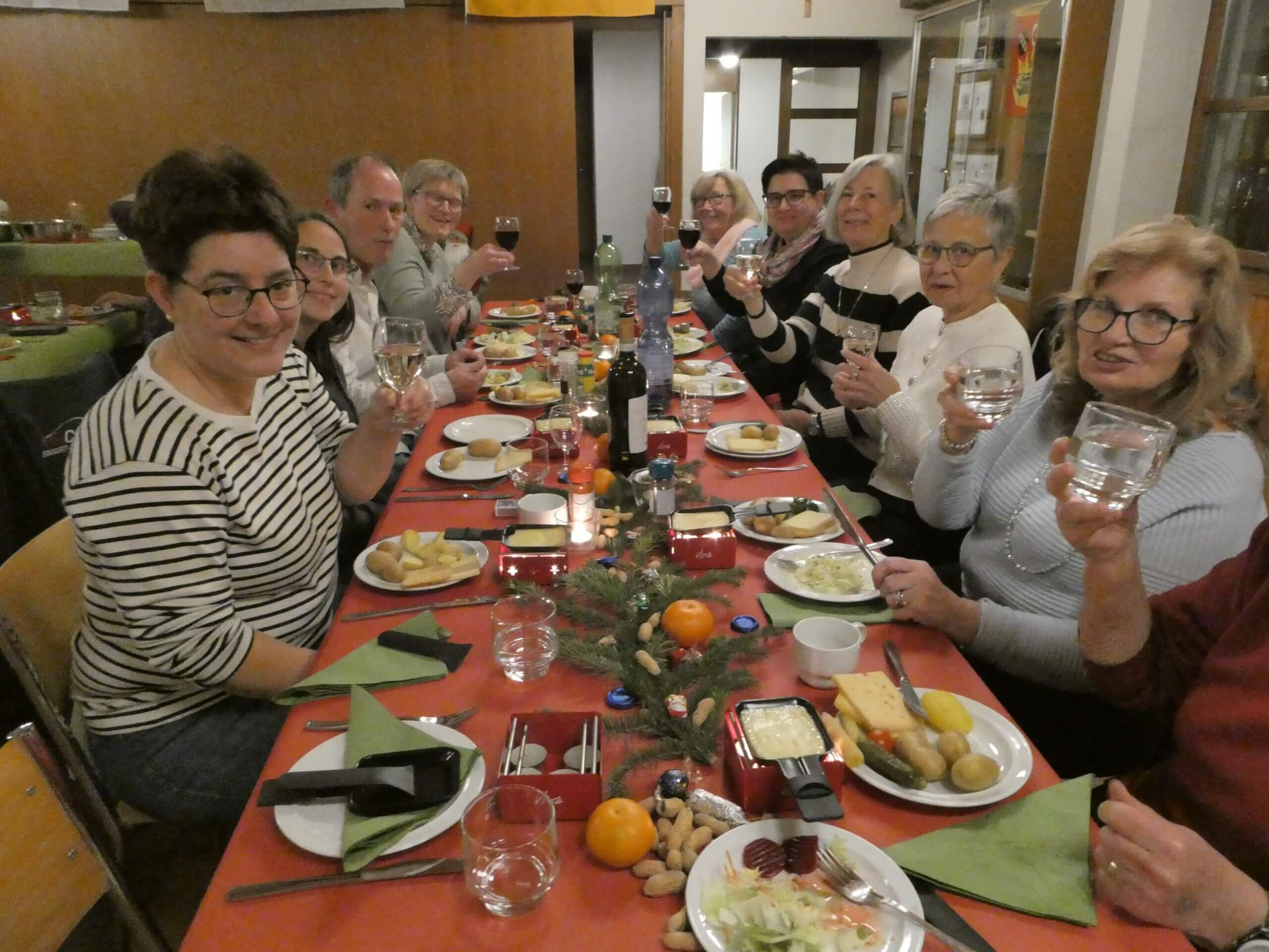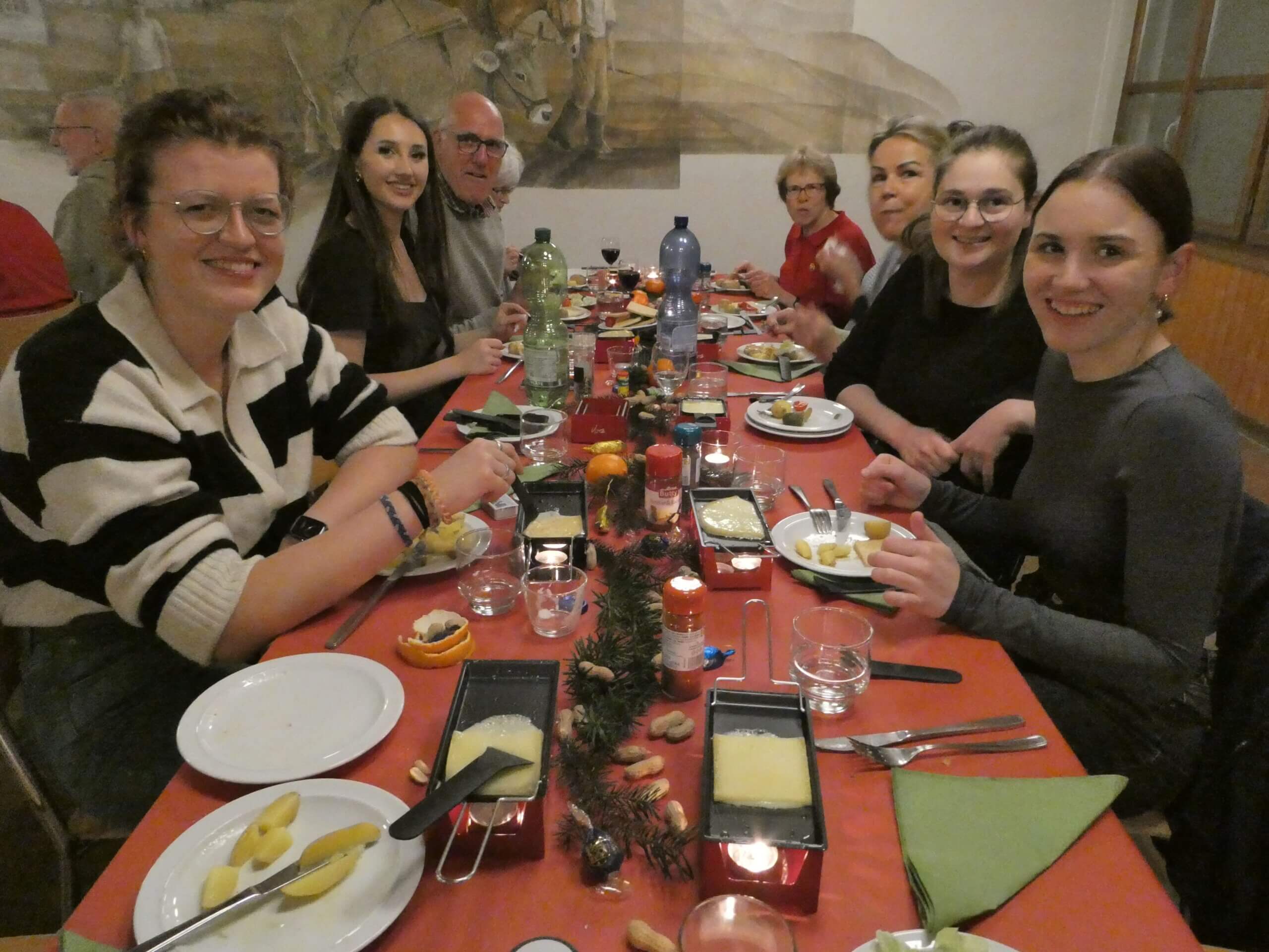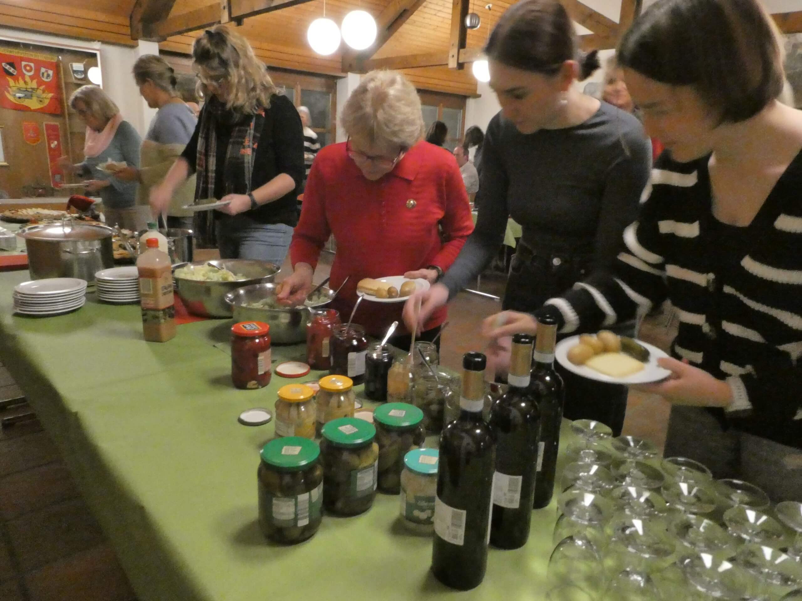 Eine riesige Käseauswahl stand bereit.Am Buffet, das keine Wünsche offen lies.Zum Wohl und ein guter Appetit.Ein reich gedeckter Tisch und lauter frohe Gesichter.Vielen Dank an das OK Monika Breitenstein und Jenny Hugi und an alle Helferinnen des Chlaushock.Die Kerzen-Käse-Rechauds waren schnell heiss und dekorativ, was zur gemütlicher Stimmung beitrug.Im zweiten Teil waren kleine Preise beim Lotto zu gewinnen.Volle Konzentration beim Lotto spielen.